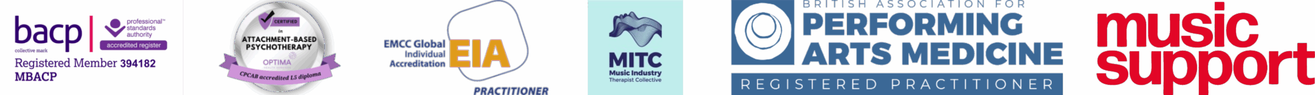 I’m a registered member of the BACP; I’m also a BAPAM registered practitioner and a member of the Music Industry Therapist Collective.
